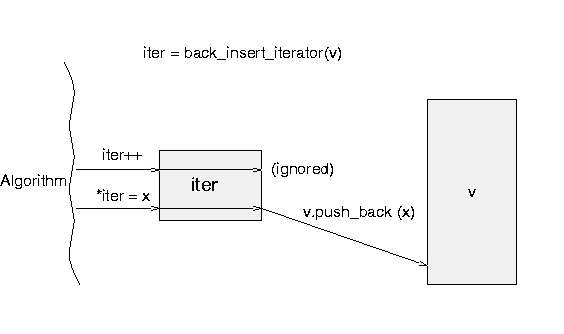 Other adaptors provide backward-moving iterators from forward-moving iterators, and queues from lists, for example.