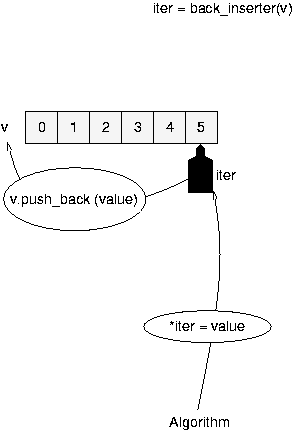Other adaptors provide backward-moving iterators from forward-moving iterators, and queues from lists, for example.