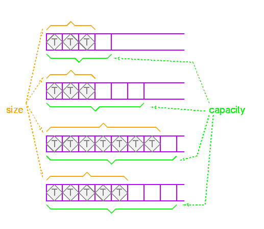 A vector contains a block of contiguous initialized elements -- if element index k has been initialized, then so have all the ones with indices less than k.